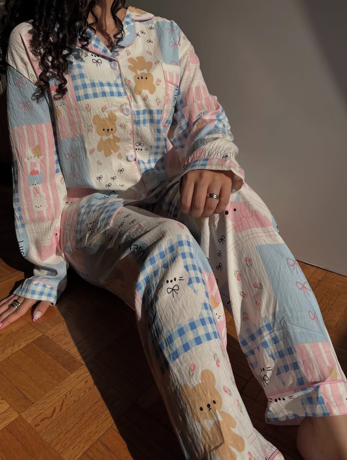 قشنگ ترین و پینترستی ترین ست خونگی که کودک درونتو زنده میکنه💕 ست دکمه دار استین بلند جنس نخپنبه موسلین لطیف ابرفت و رنگ رفت نداره اصلا بدن نما نیست فری سایز مناسب(۳۶ الی ۴۴)۴۶با کشسانی جنس پارچه درجه یک دوخت خیلی قشنگی داره جنس کار وارداتی درجه یک تضمینی✅ ارسال با پست و تیباکس ۳ الی ۵ روز کاری🚚