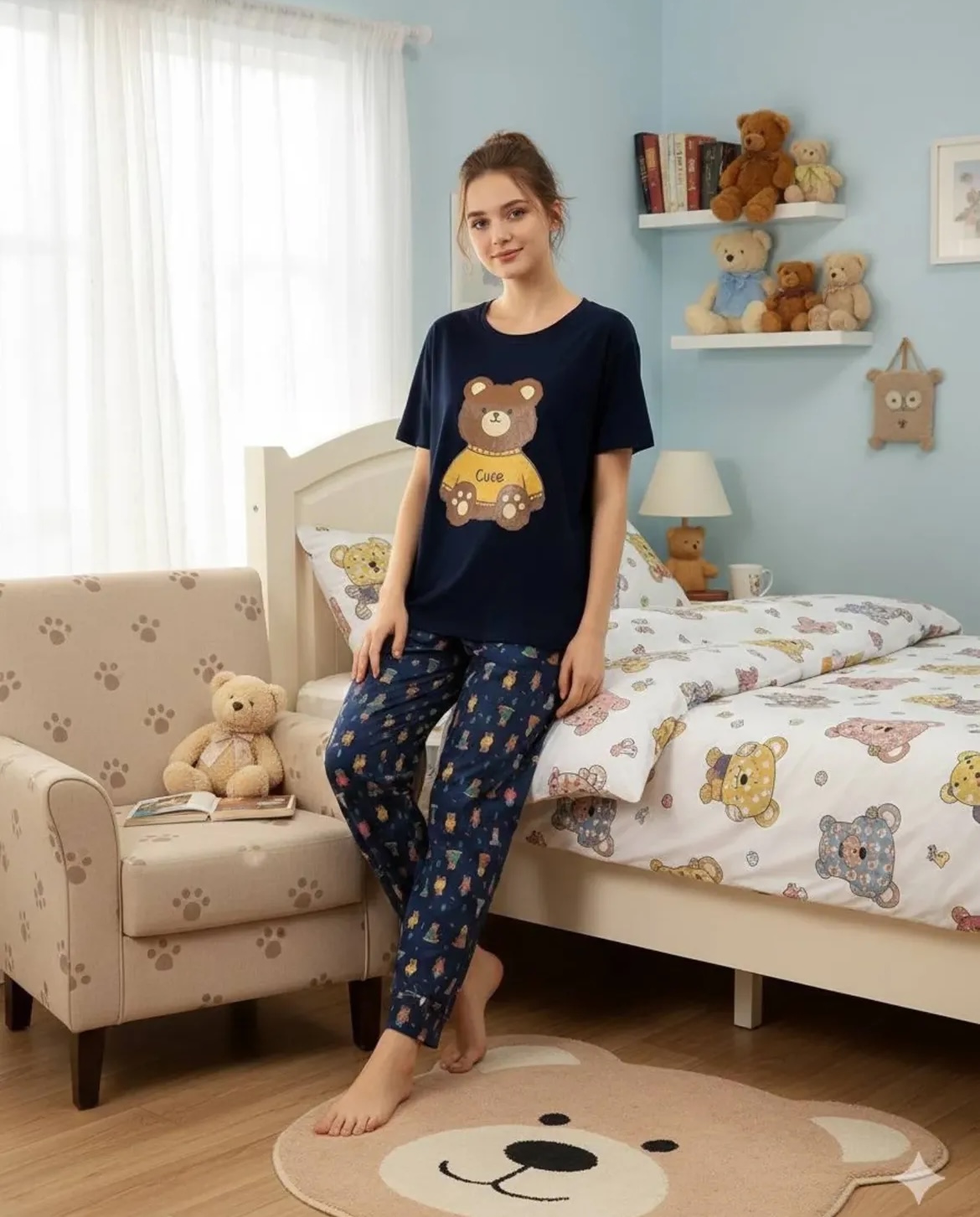 ست تیشرت شلوار زنانه عروسکی نخپنبه کد ۰۹