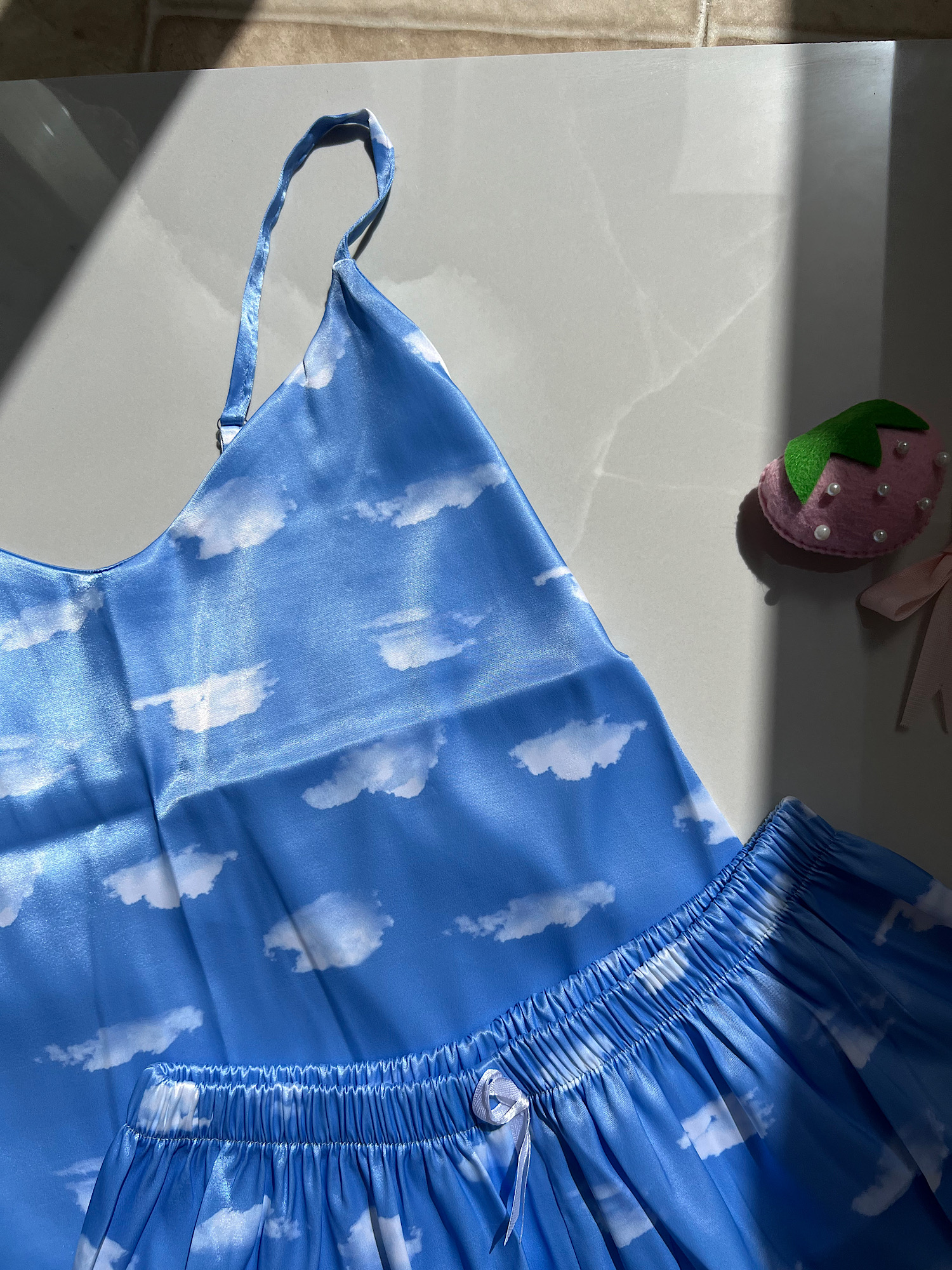 ست تاپ شلوارک زنانه لباس خواب ساتن راحتی ابر آبی کد ۴۲