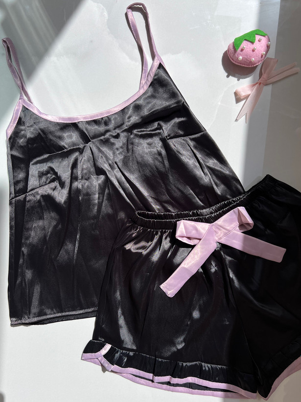 ست تاپ شلوارک زنانه لباس خواب راحتی ساتن مشکی کد ۴۷