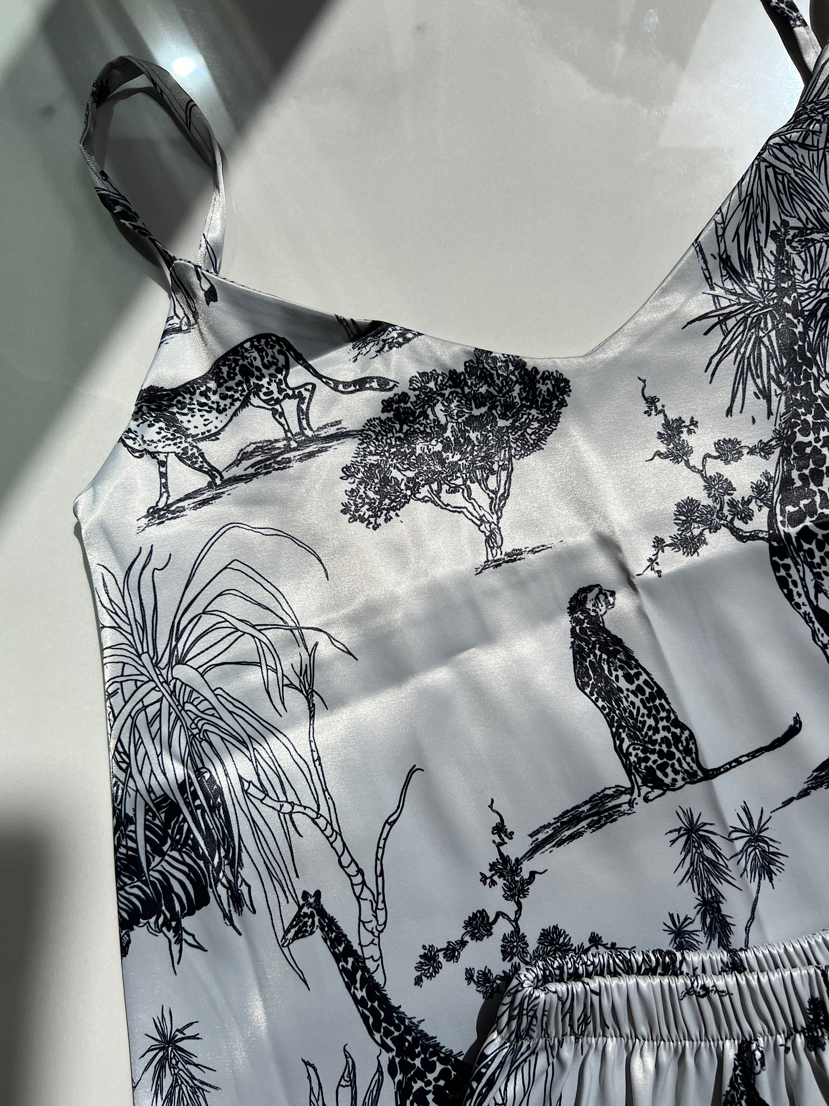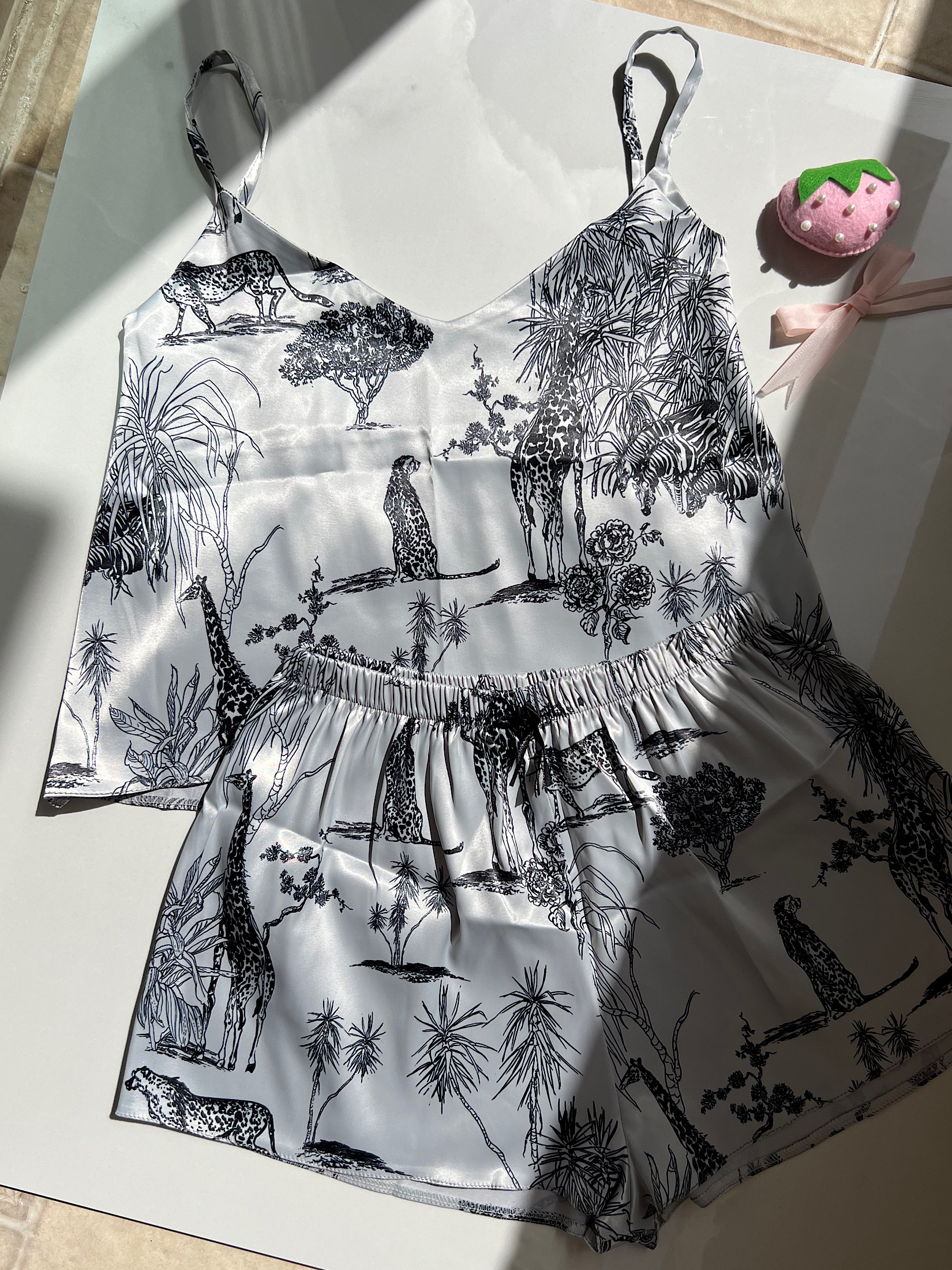 ست تاپ شلوارک زنانه لباس خواب راحتی ساتن جنگل کد ۴۸