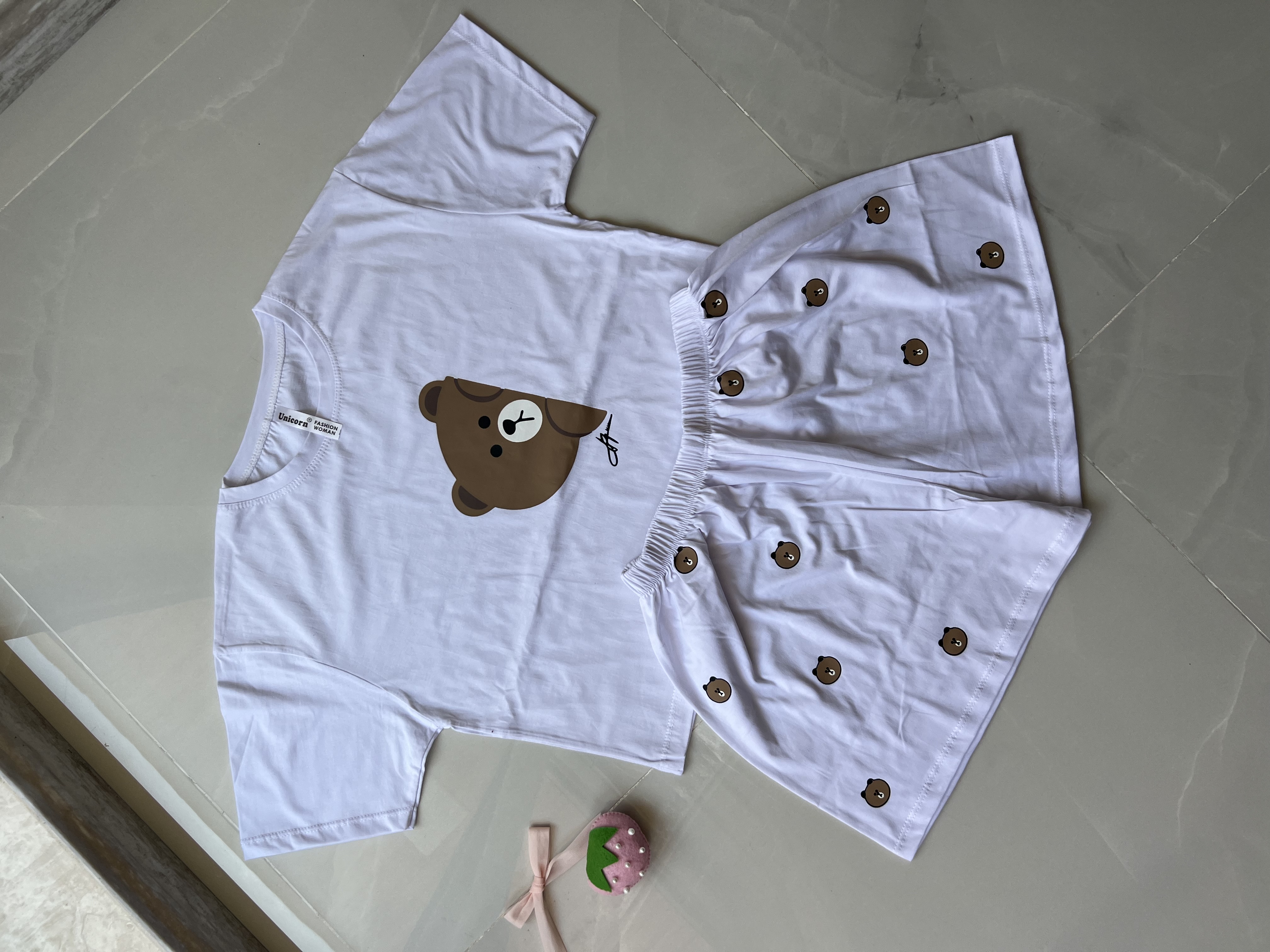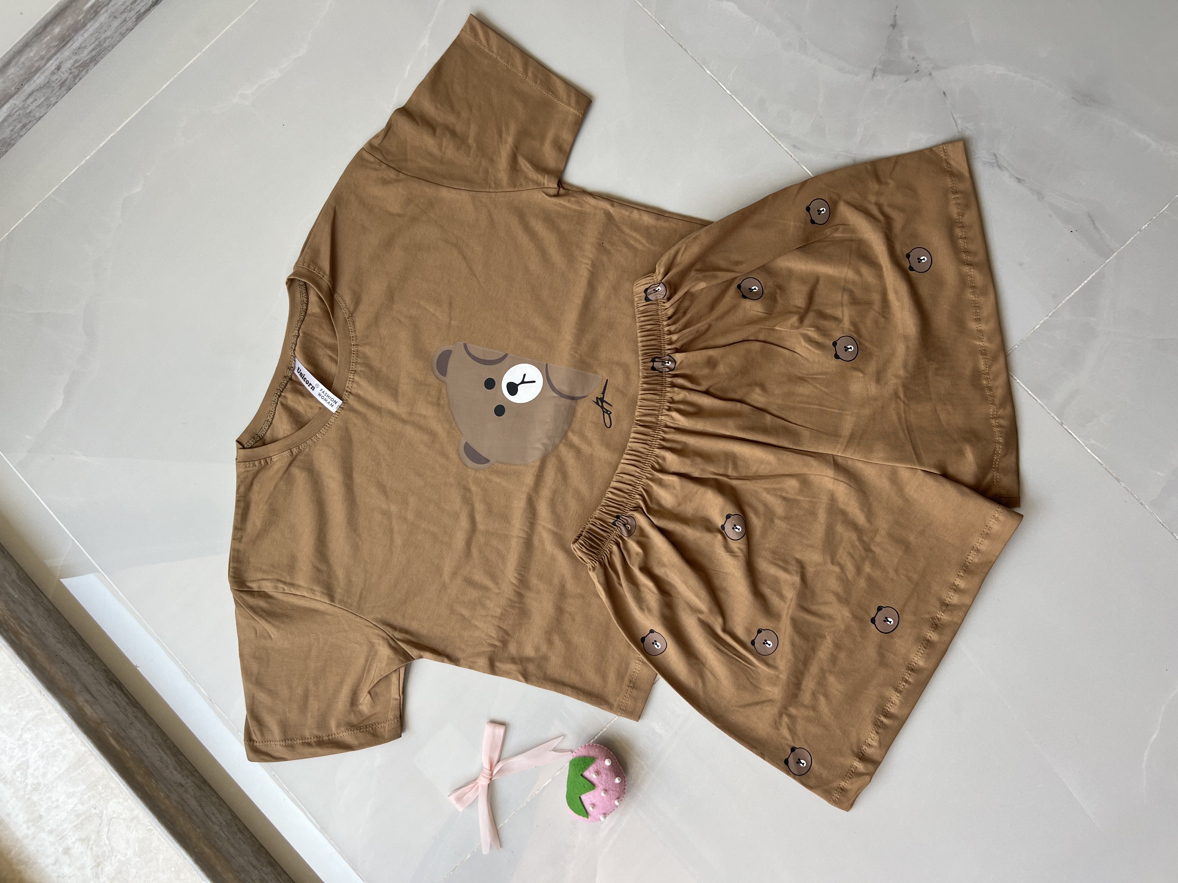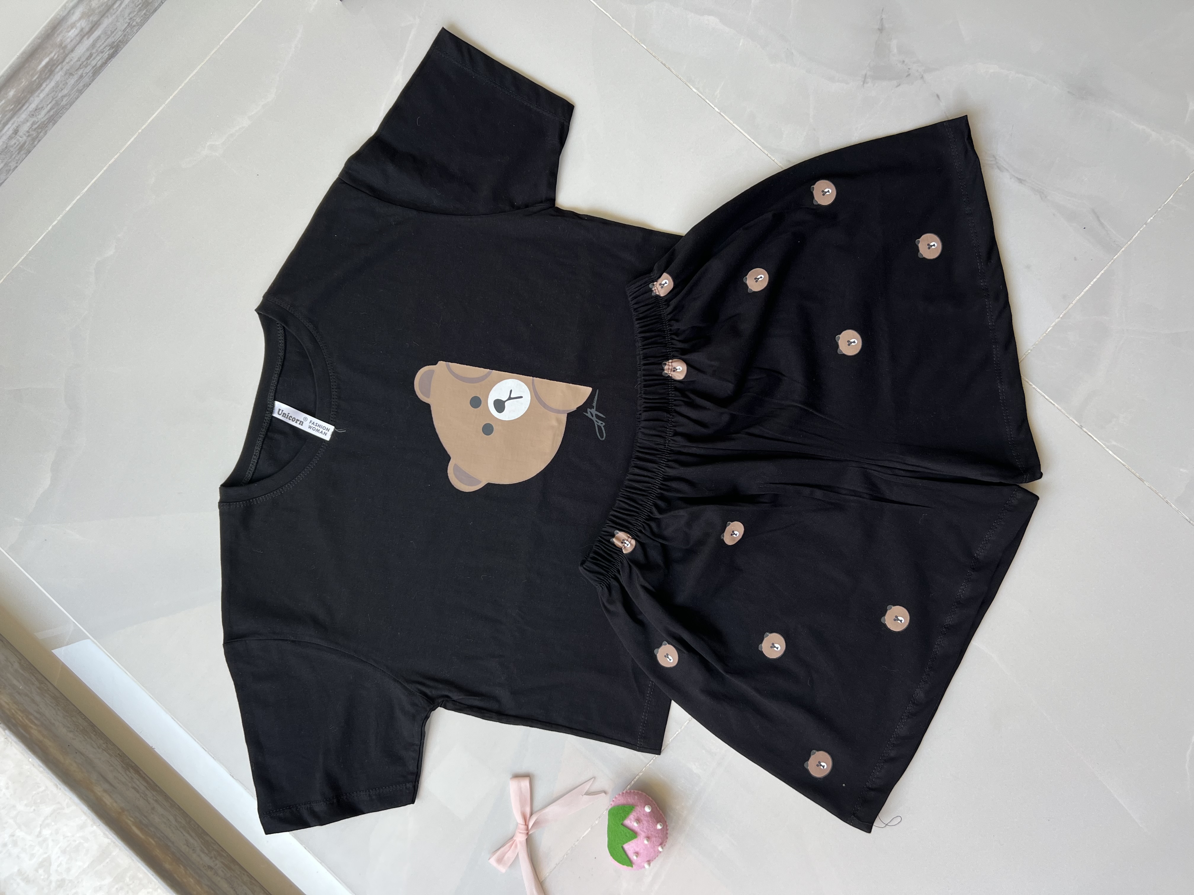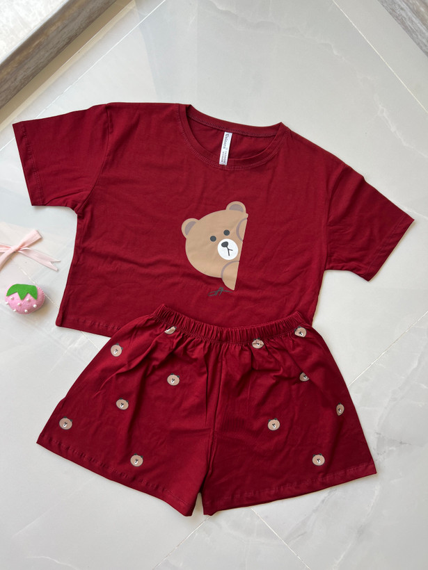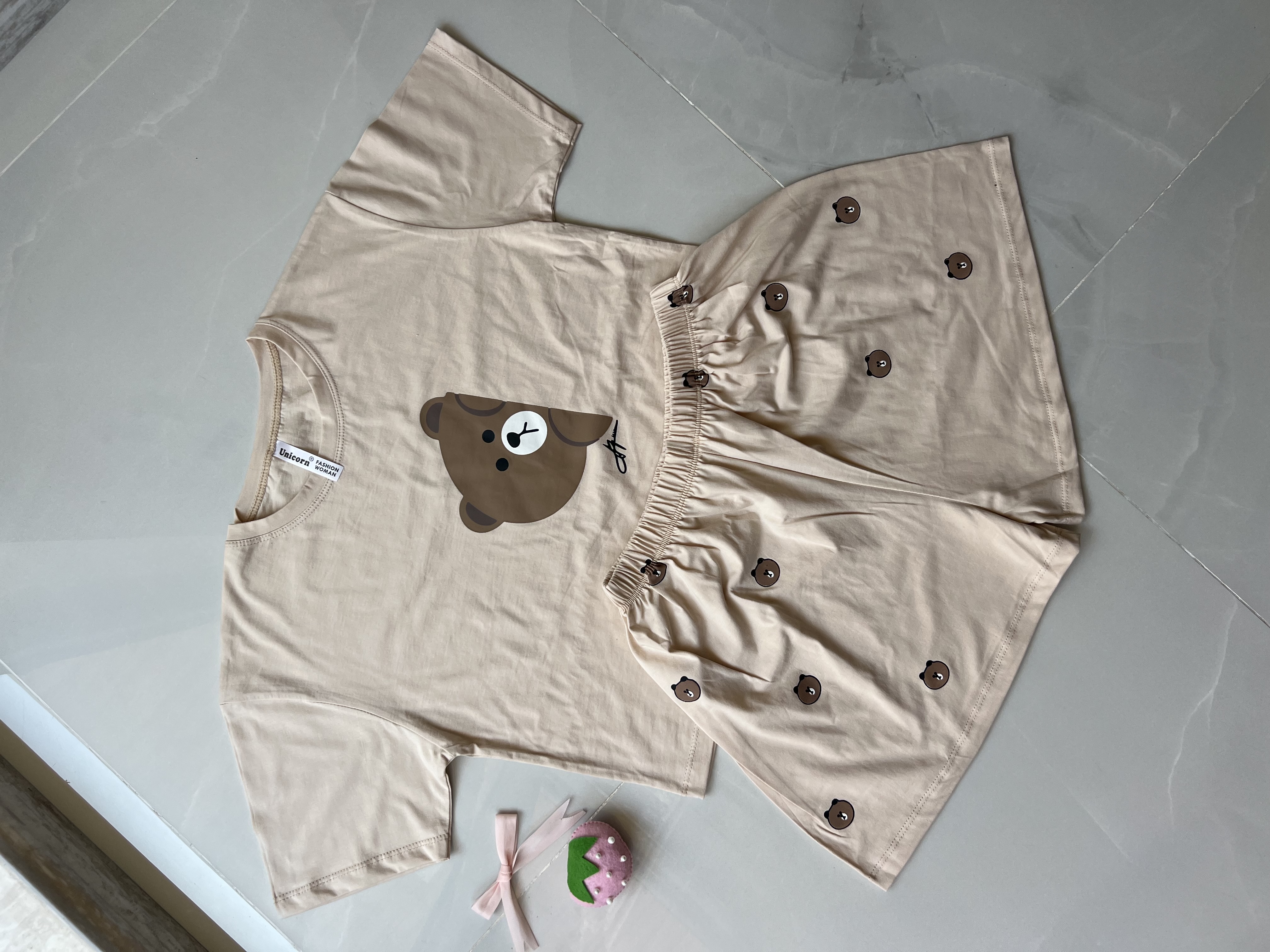 ست تیشرت شلوارک زنانه راحتی خرسی نخی کد ۵۶