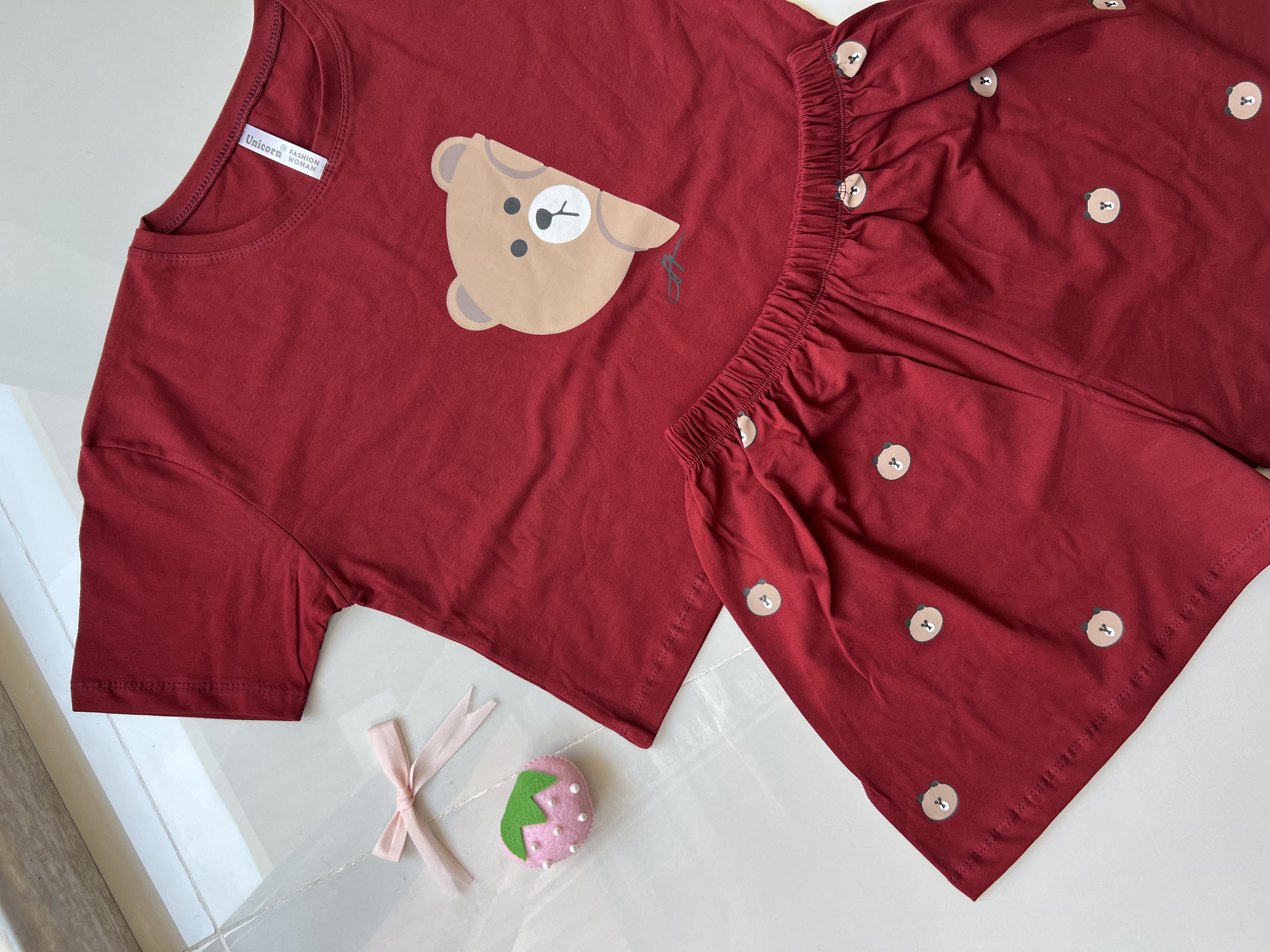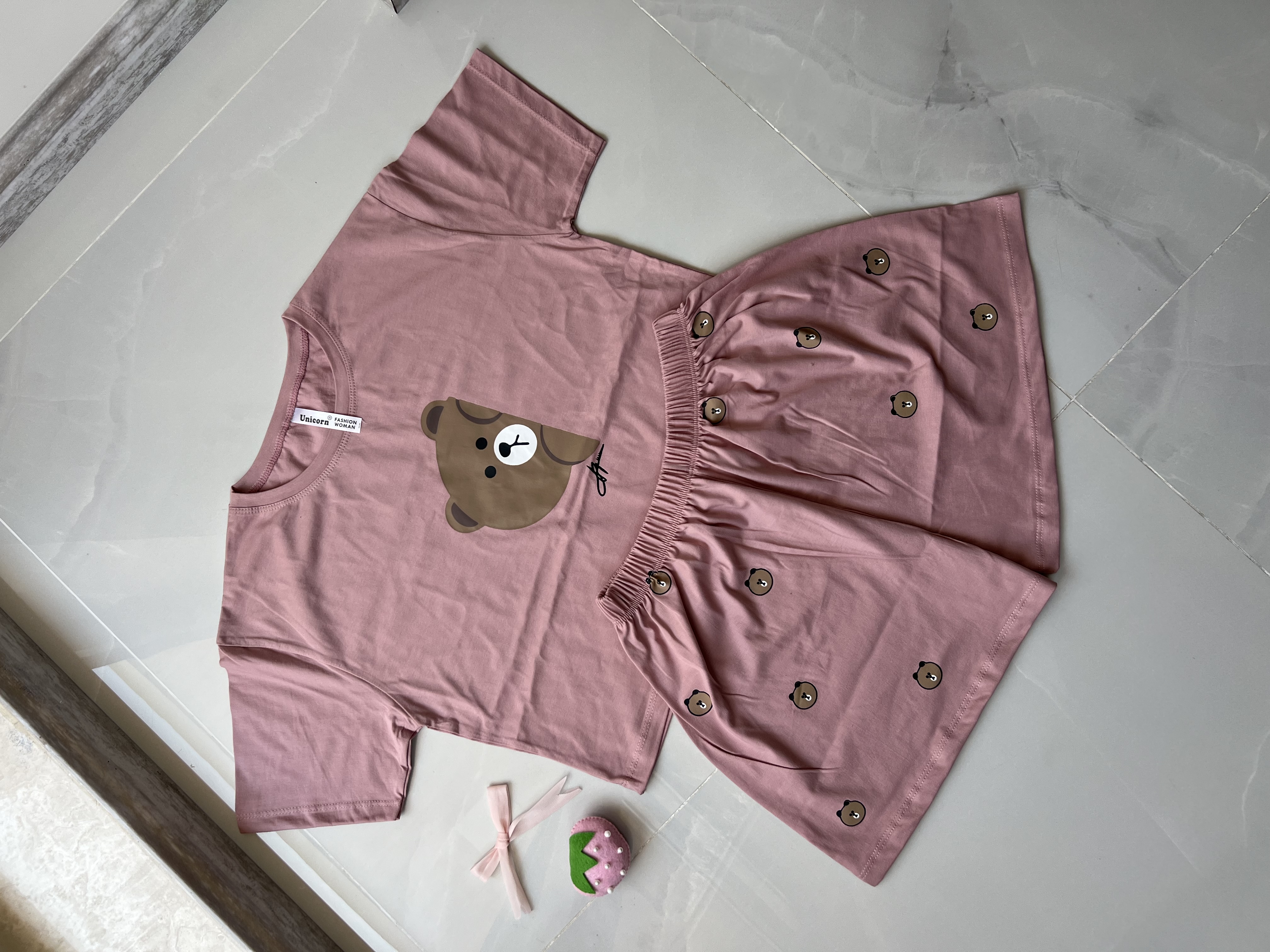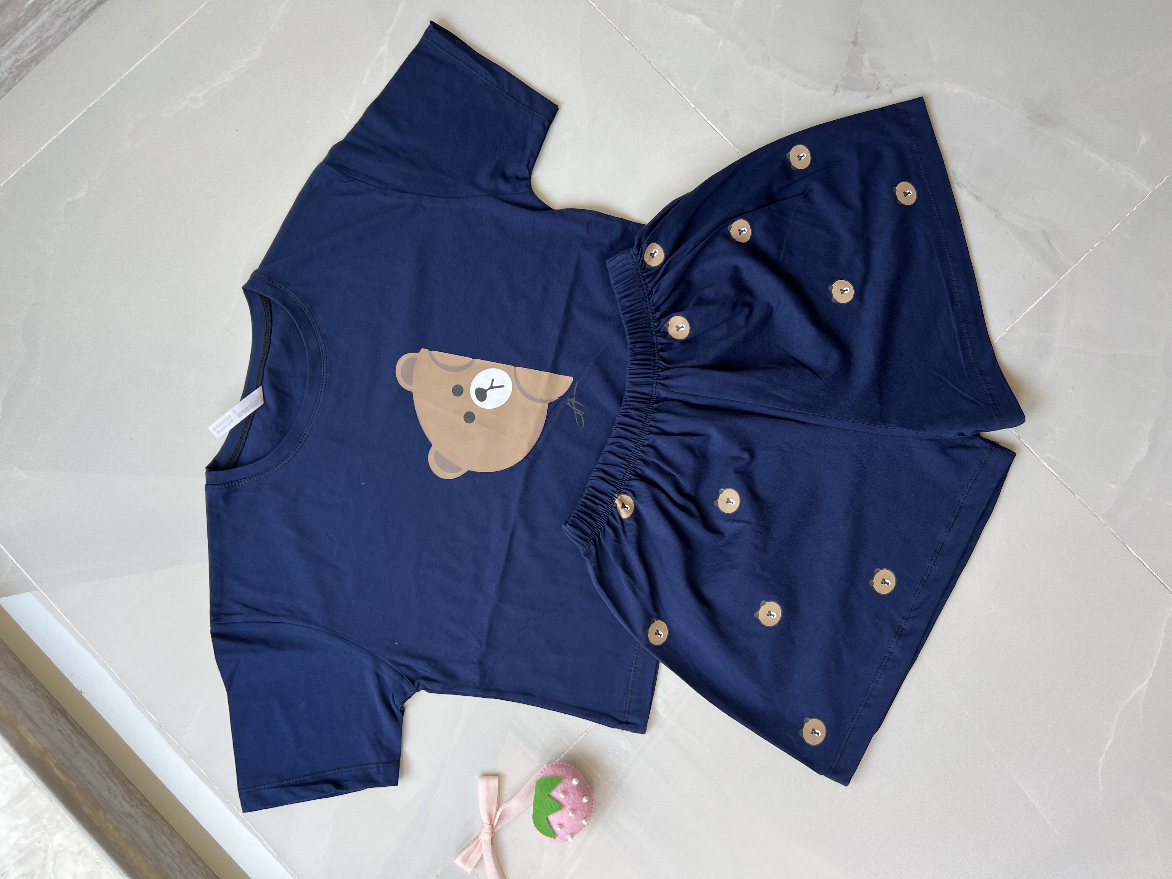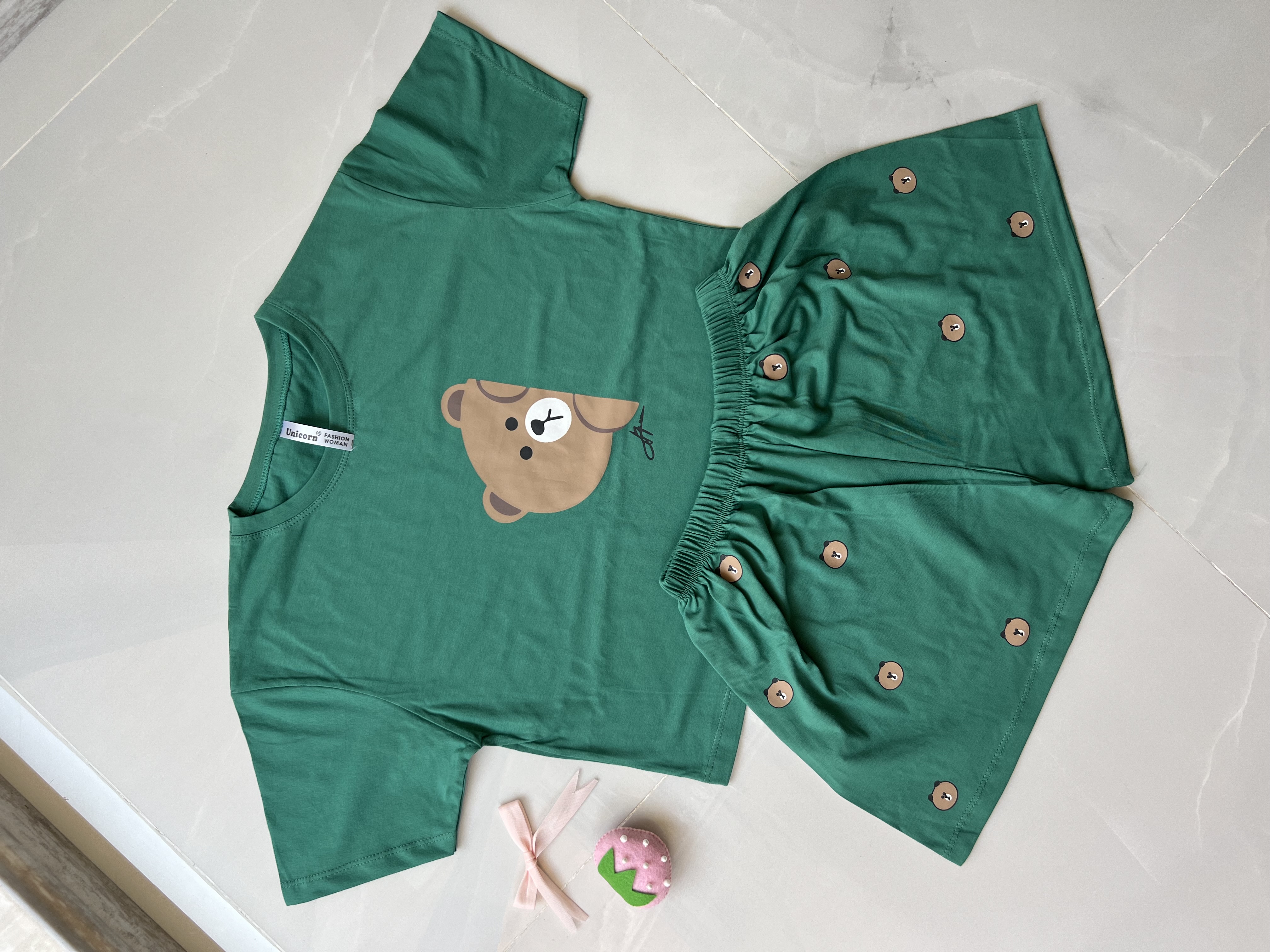 ست تیشرت شلوارک زنانه راحتی خرسی نخی کد ۵۶