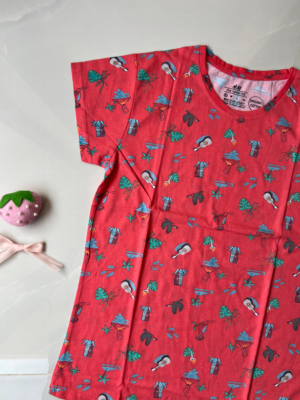 تیشرت یقه گرد زنانه مارک اچ اند ام اورجینال جنس نخی