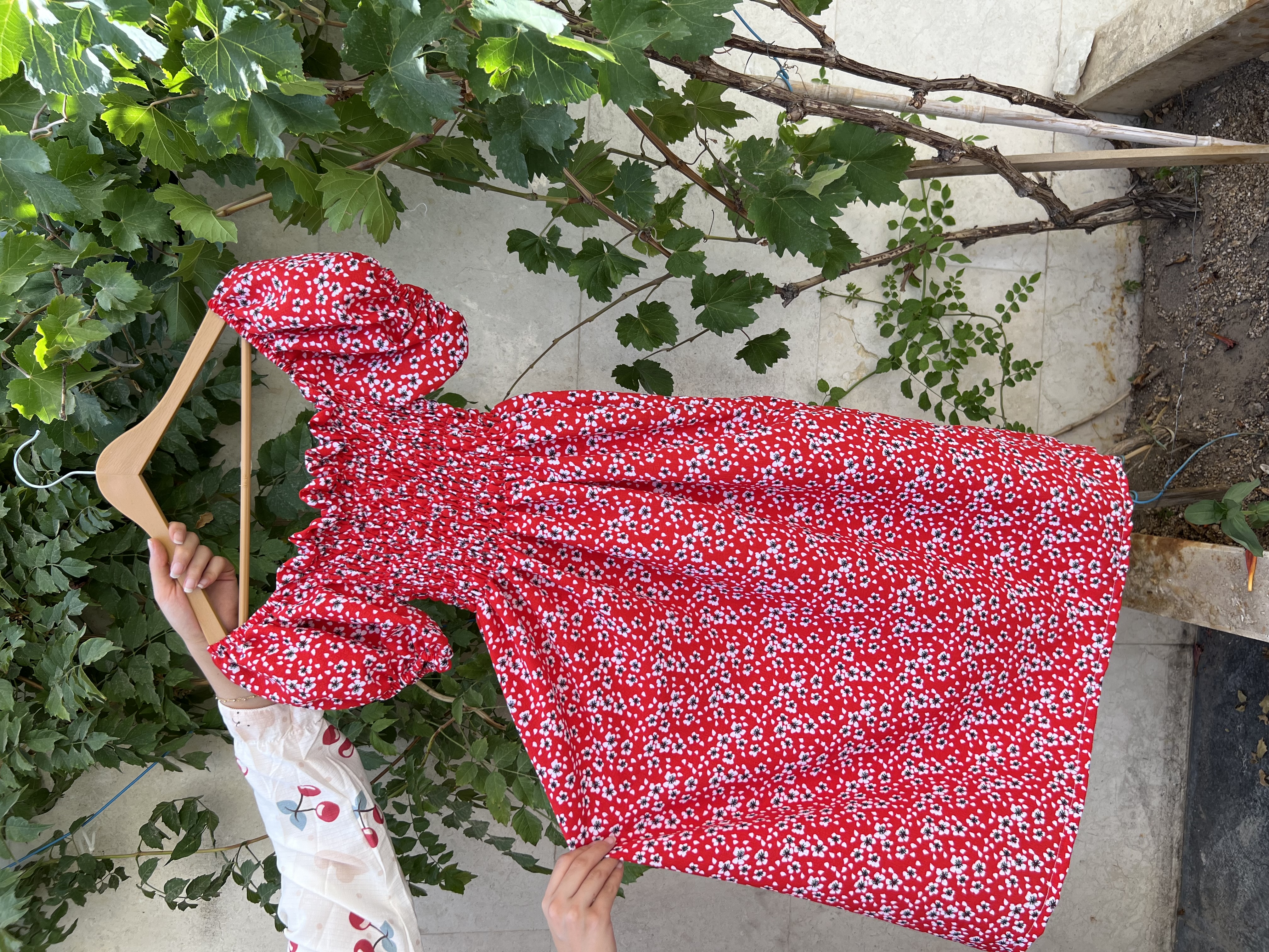 پیراهن زنانه آستین پوفی گل گلی بهار کد ۶۲