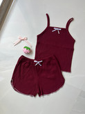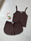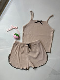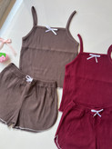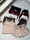 ست تاپ شورتک زنانه کرکره ای کبریتی پاپیونی کد ۵۰۱