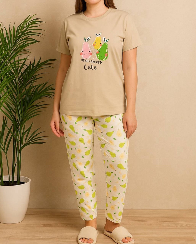 ست تیشرت شلوار زنانه عروسکی نخ پنبه کد ۰۱