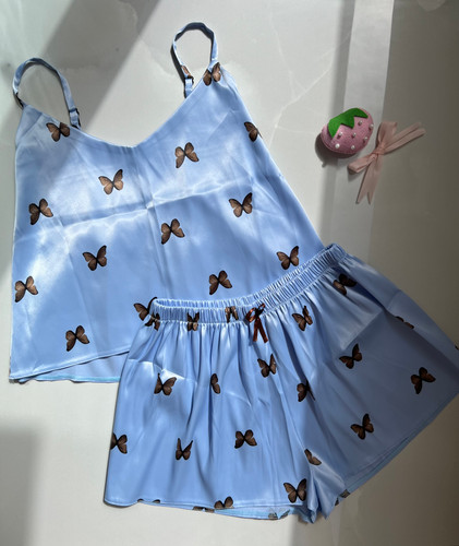 ست تاپ شلوارک زنانه لباس خواب ساتن راحتی پروانهناموجود