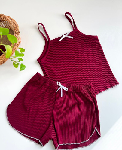 ست تاپ شورتک زنانه کبریتی نخپنبه کد ۵۰۱