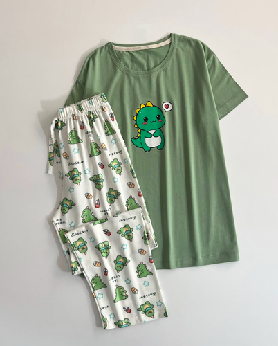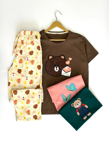 ست تیشرت شلوار زنانه عروسکی نخ پنبه کد ۰۱