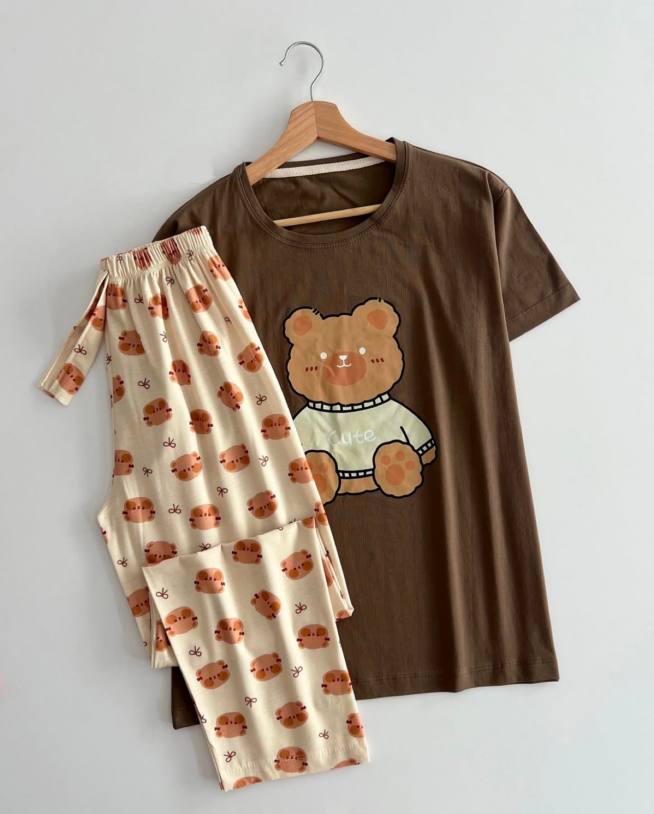 ست تیشرت شلوار زنانه عروسکی نخ پنبه کد ۰۱